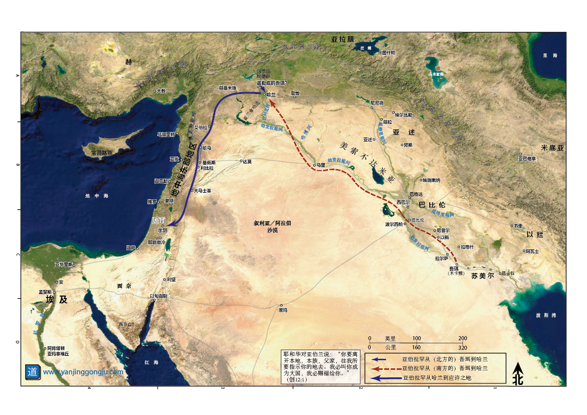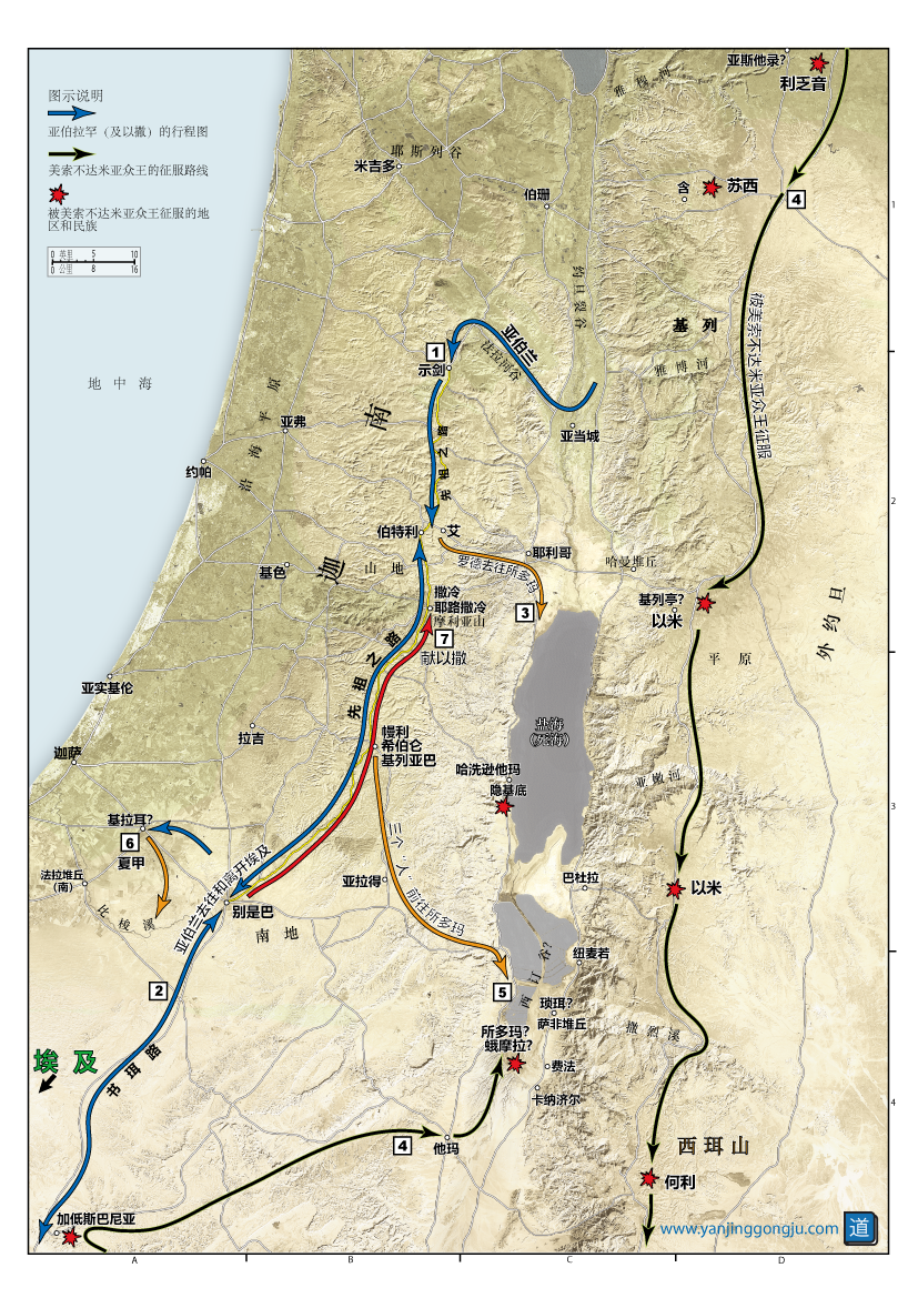 👉对应地图与说明:1-2「亚伯拉罕与以撒」(来自:研经工具)