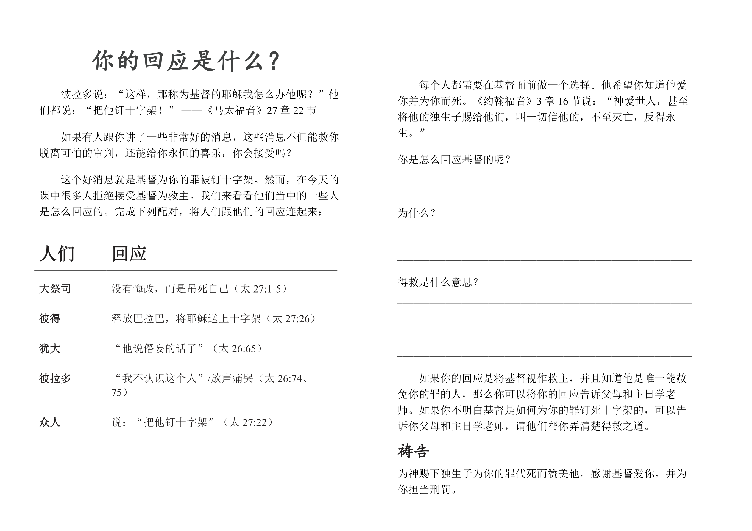 所需材料:“耶稣受审和被弃”手工页复印件、剪刀、胶水和蜡笔。