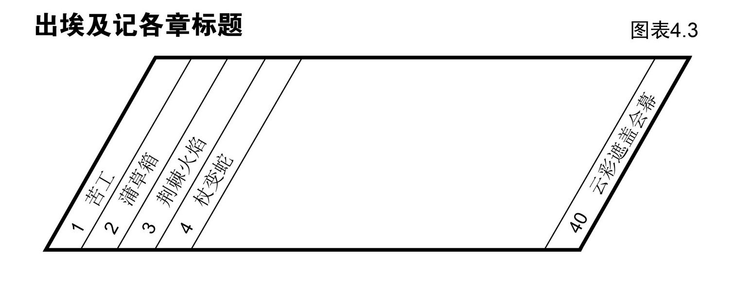 ② 现在再读整卷出埃及记一遍,找出可以代表全章主题的字词和短句。把四十章的章题都写在图表4.3上。