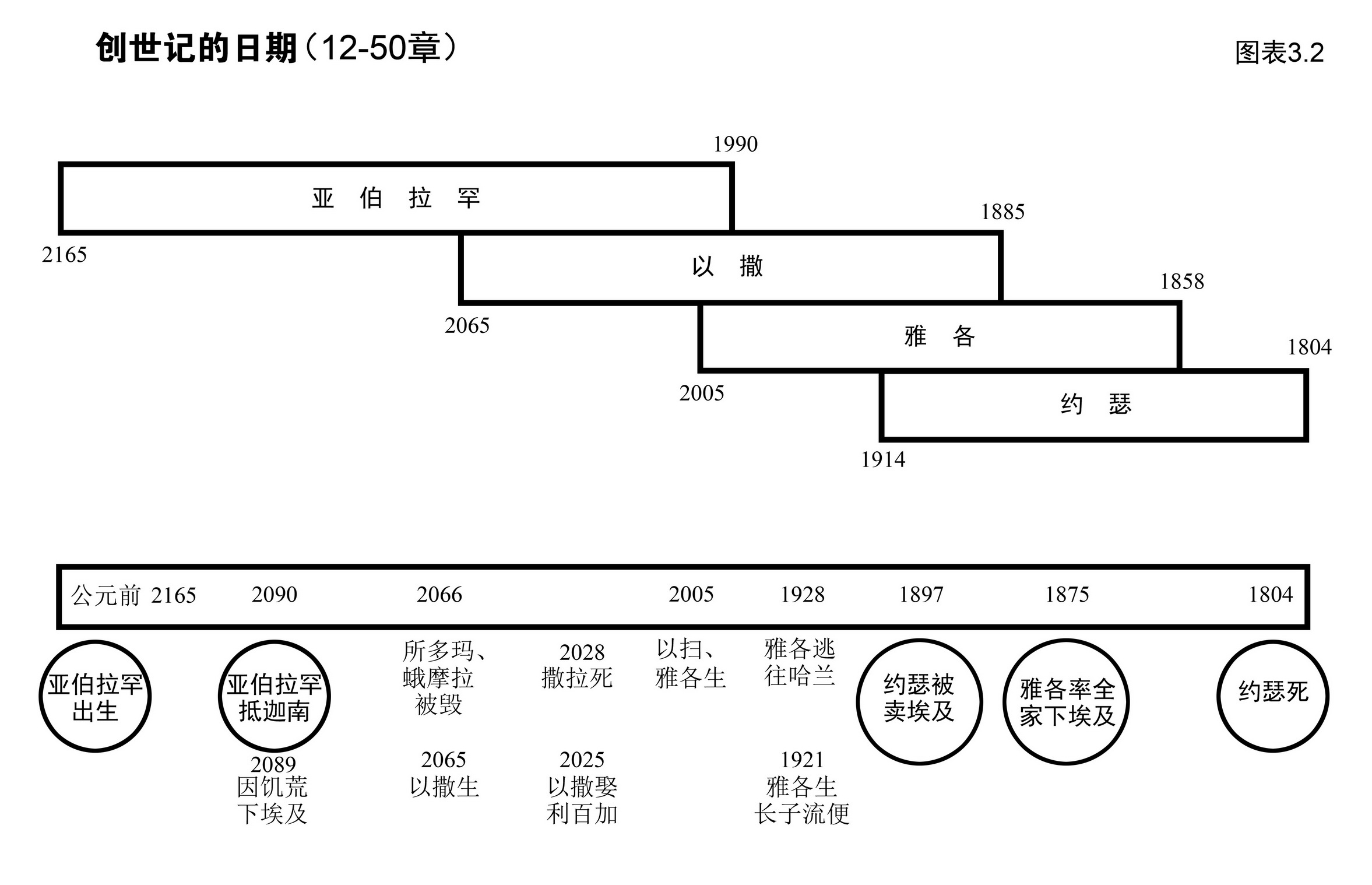 ① 略翻看创世记,注意书中重点。请重温图表3.5及图表3.2的年份。