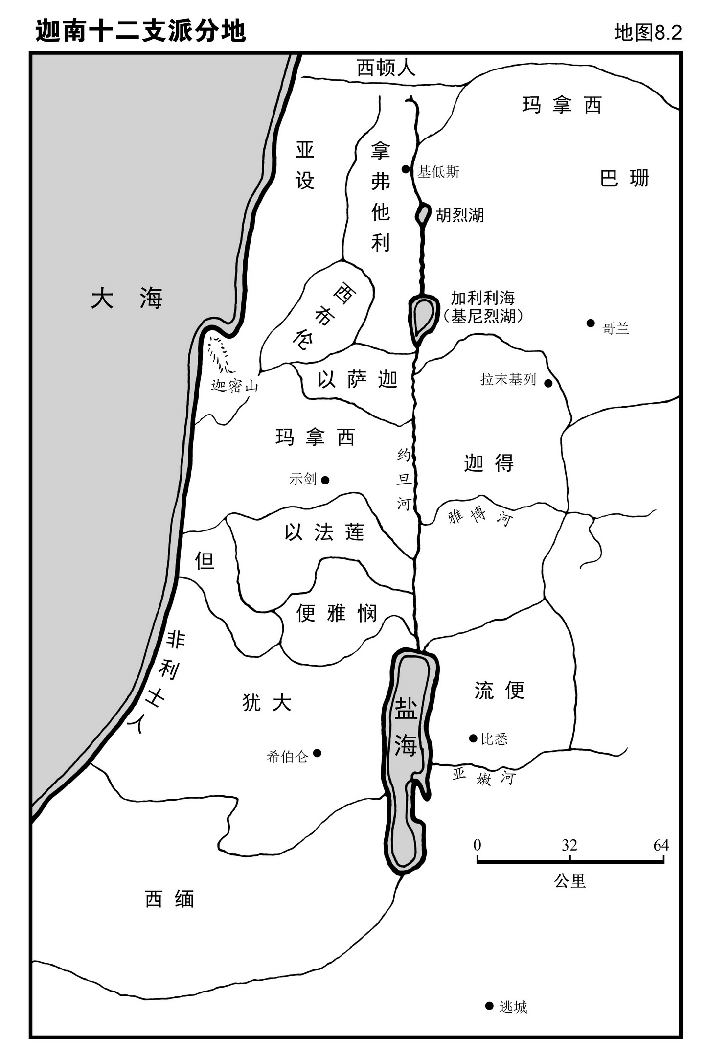 地图8.2 迦南十二支派分地