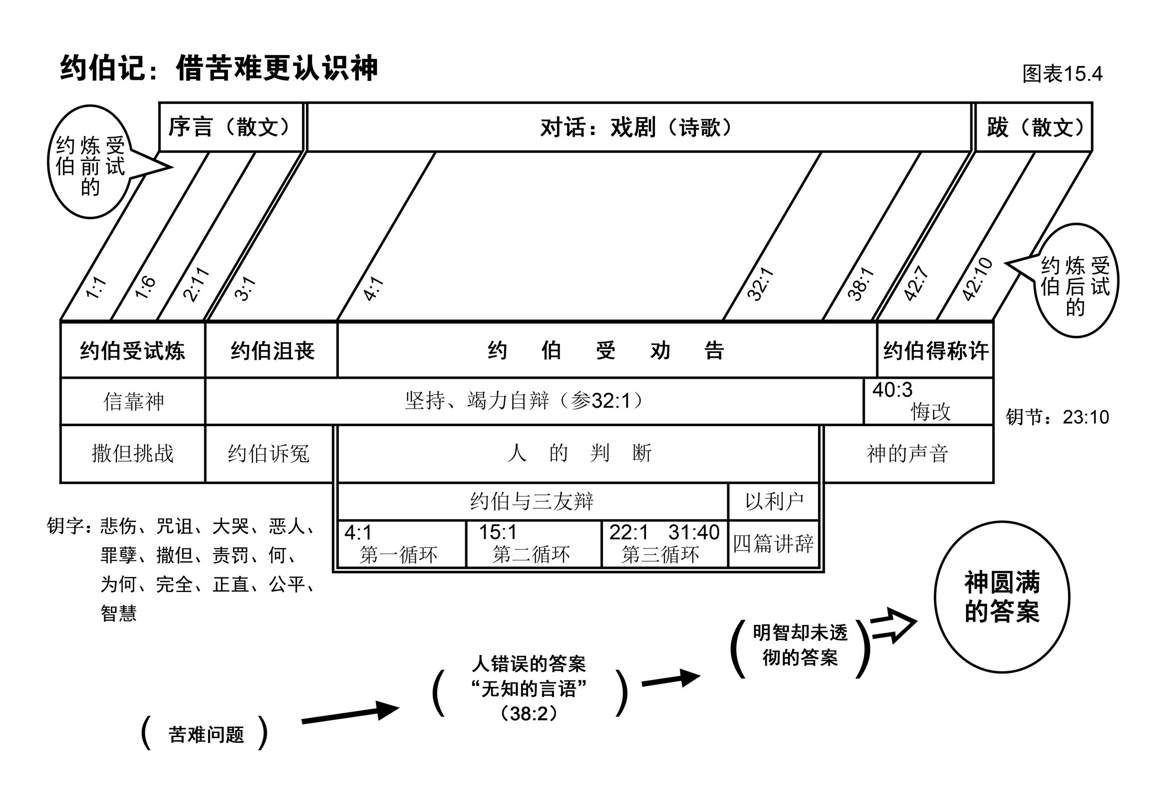 图表15.是约伯记综览,书的结构可以从不同的大纲看出,请参照图表15.4以完成下列指定的功课。