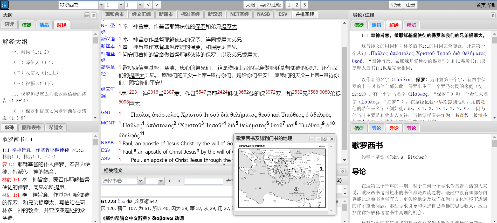 使用说明:请您注册研经工具的账号,选择歌罗西书,并标签选择“解经”,即可阅读该注释的大纲、导论和注释。